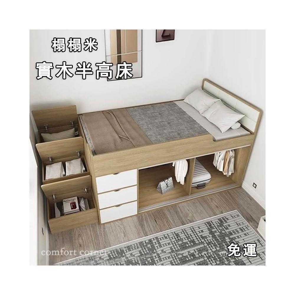 半高床實木小戶型省空間臥室上床下櫃多功能儲物榻榻米中高床