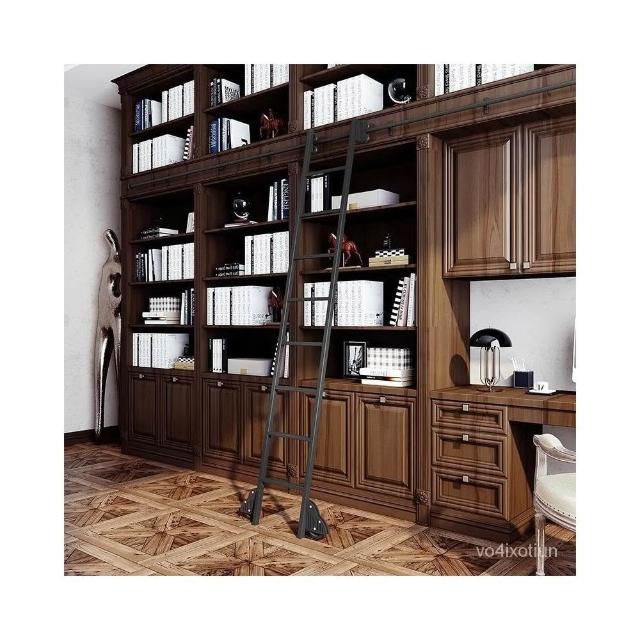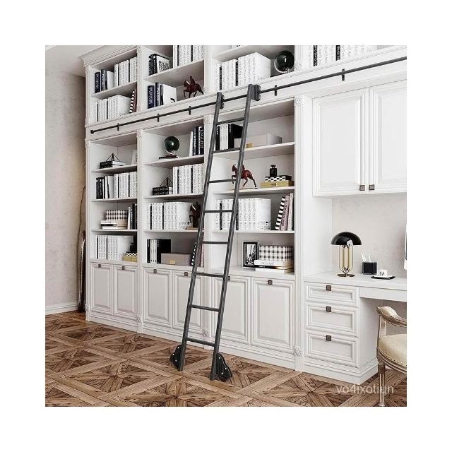 書架移動鐵藝梯子軌道梯書架圖書館傢用爬梯可定製室內閣樓一字梯
