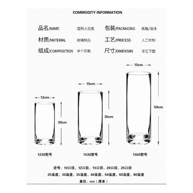 花瓶 玻璃瓶 透明/落地/擺件/水竹/富貴竹/插花/直筒瓶子/玻璃瓶/裝飾瓶/裝飾花瓶