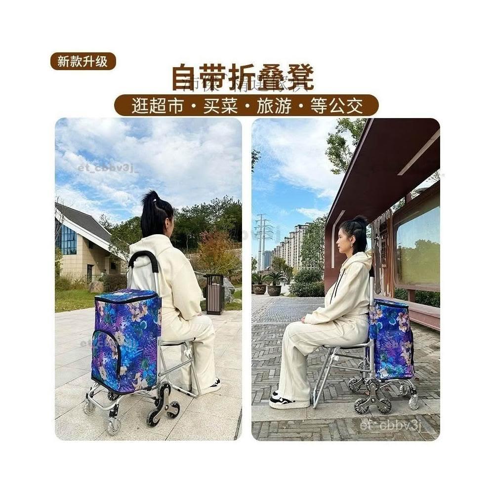 收納推車 買菜車小拉車可坐人爬樓超市便攜式購物車傢用耐用折疊小拉車子 老人買菜車折疊手拉菜籃