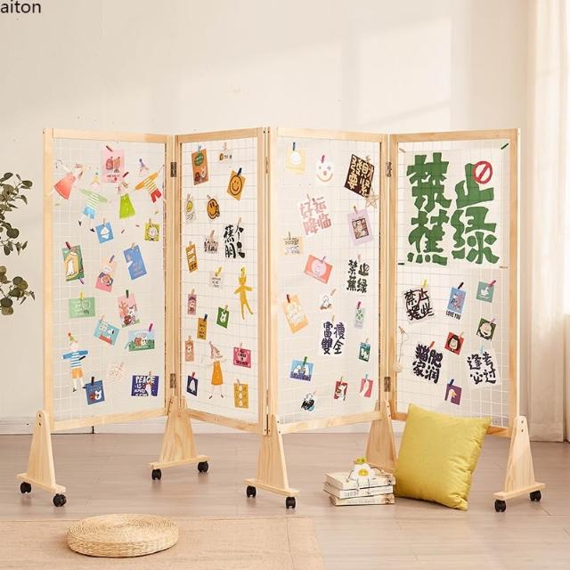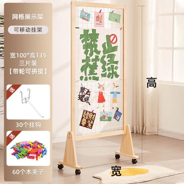 屏風隔斷網格展示架實木移動可折疊幼稚園手工作品字畫