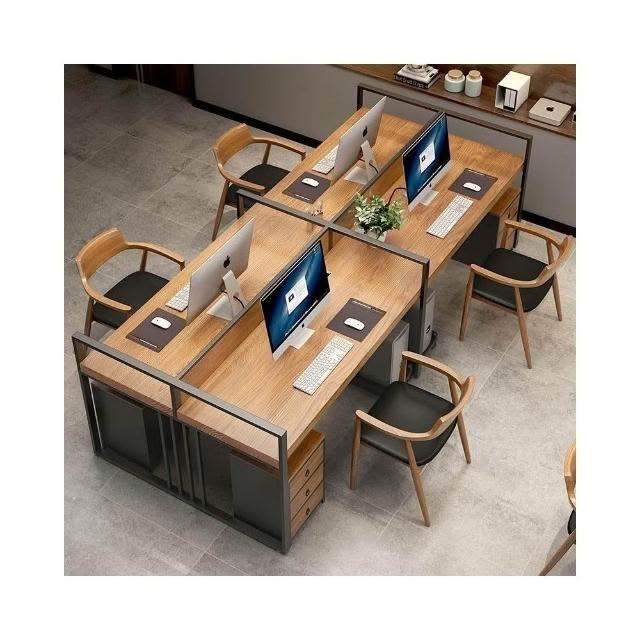 ~美式屏风办公桌4人桌椅组合工业风屏风职员桌卡位隔断办公室工位