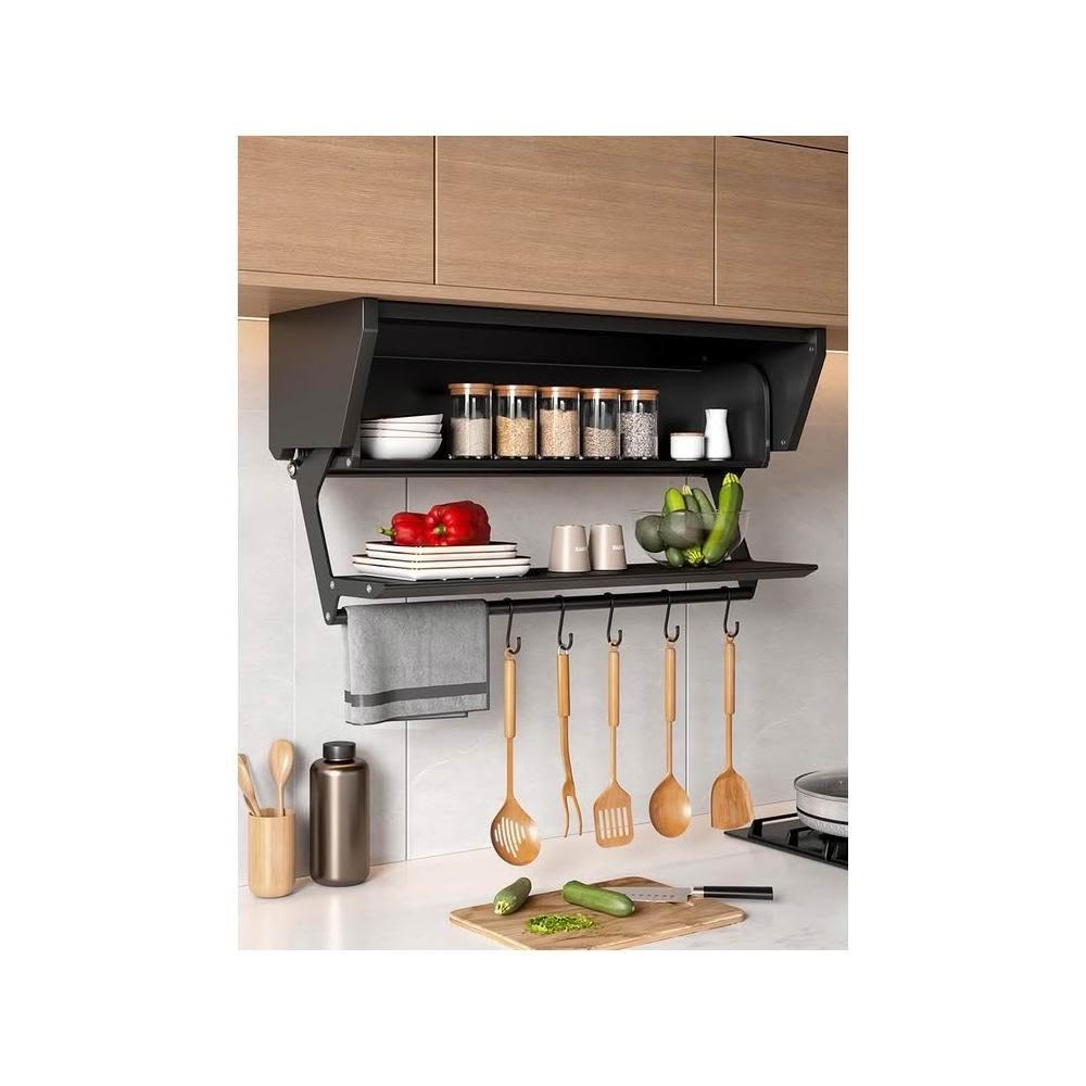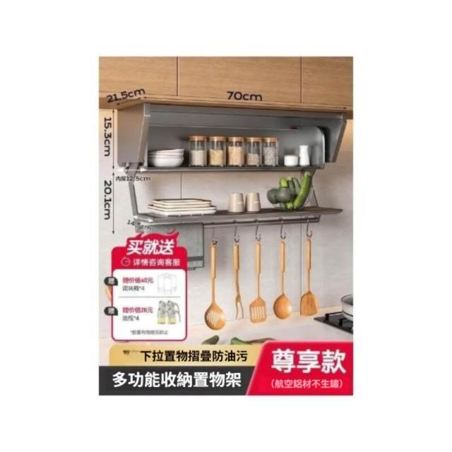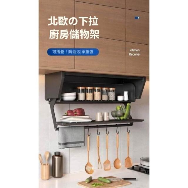 日式廚房置物架下拉式吊櫃摺疊儲物架碗碟調料架備菜神器櫥櫃收納