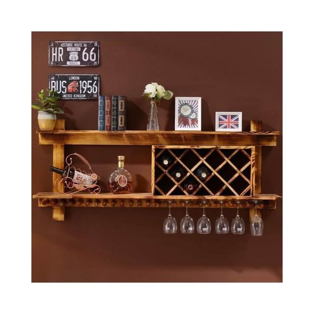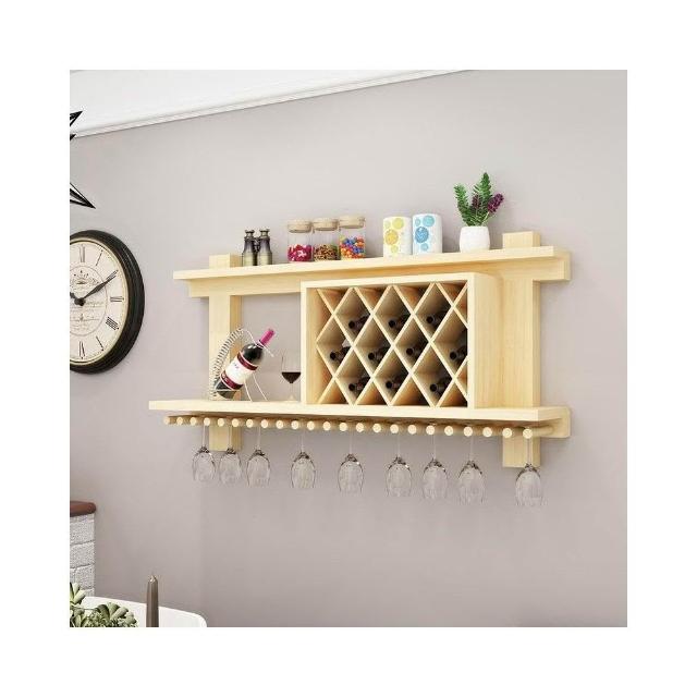 美式創意酒櫃酒架墻上酒櫃壁掛式菱形酒格餐廳實木紅酒架掛墻