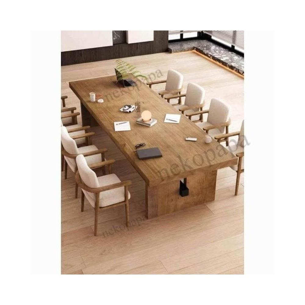 實木會議桌松木接待辦公室洽談桌圖書館培訓室桌椅組合