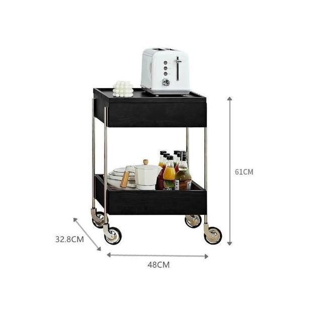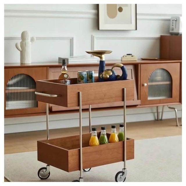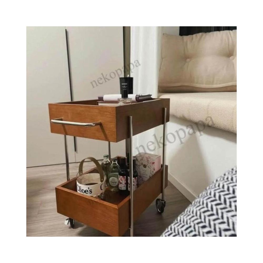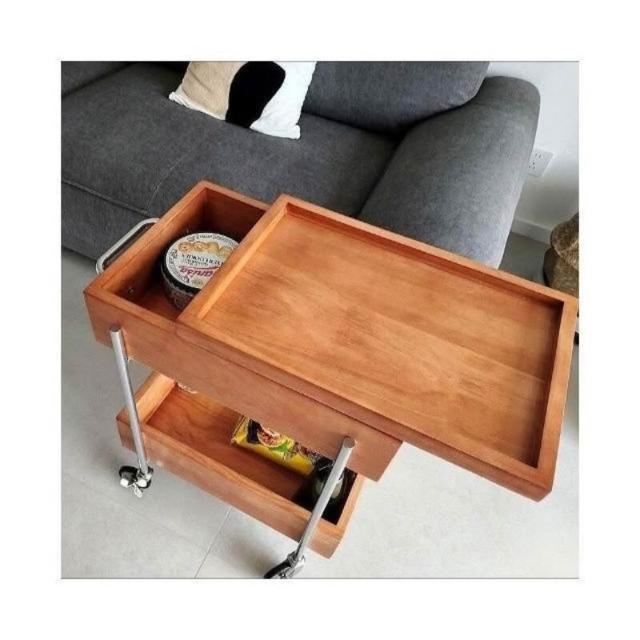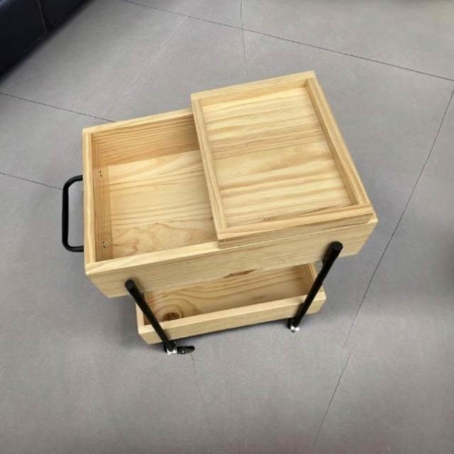 實木推車零食床頭置物架可移動中古風邊幾