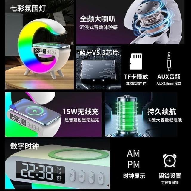 台灣現貨 大G藍牙音響 藍芽喇叭 藍芽音箱 藍芽音響 無線充電 音響 氛圍燈音響 鬧鐘夜燈 小夜燈 大g藍芽喇叭新年禮物 無線音箱