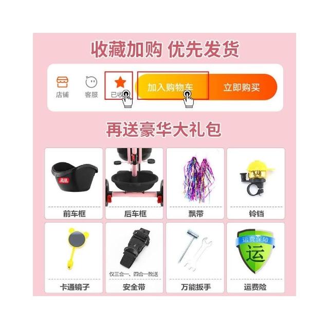 鳳凰嬰兒童三輪腳踏車折疊遛娃手推車寶寶可躺可坐1-3-6歲自行車