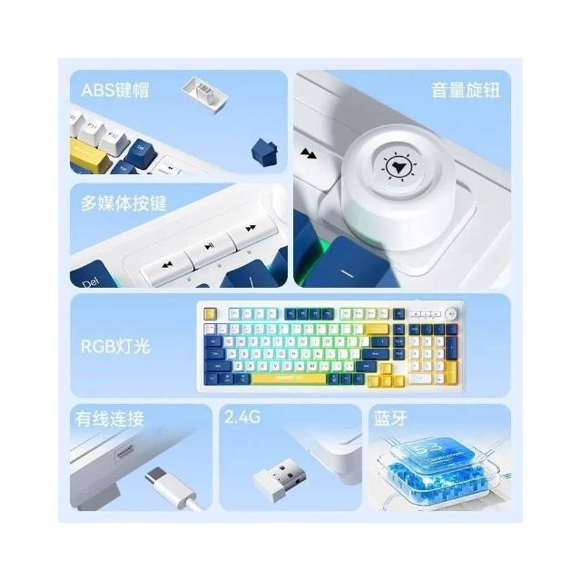 KB127無線藍牙三模鍵盤發光拼色旋鈕筆記本電腦辦公商務貿易