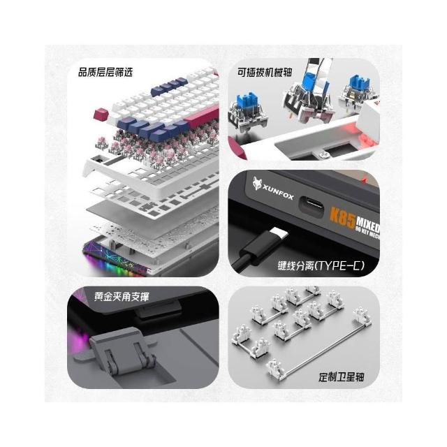 新款炫K85有線機械鍵盤三拼色發光熱插拔鍵盤青軸紅軸遊戲