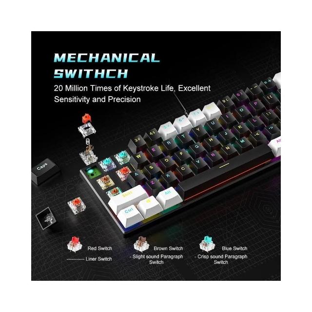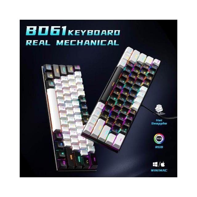 真機械鍵盤BD61青紅軸雙拼色RGB熱插拔電競遊戲有線鍵盤現貨