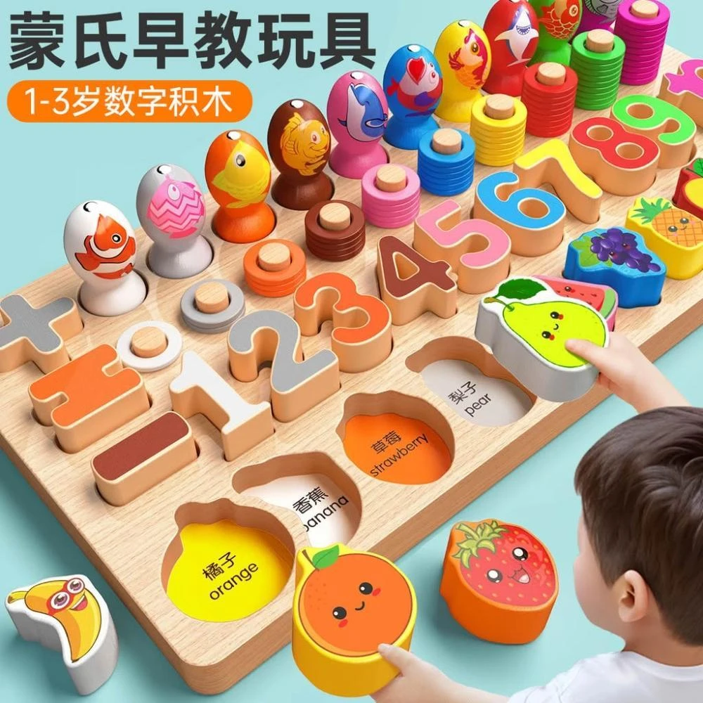 蒙氏早教益智拼圖玩具幼兒童1到3歲男孩女孩寶寶啟蒙木質積木拼裝