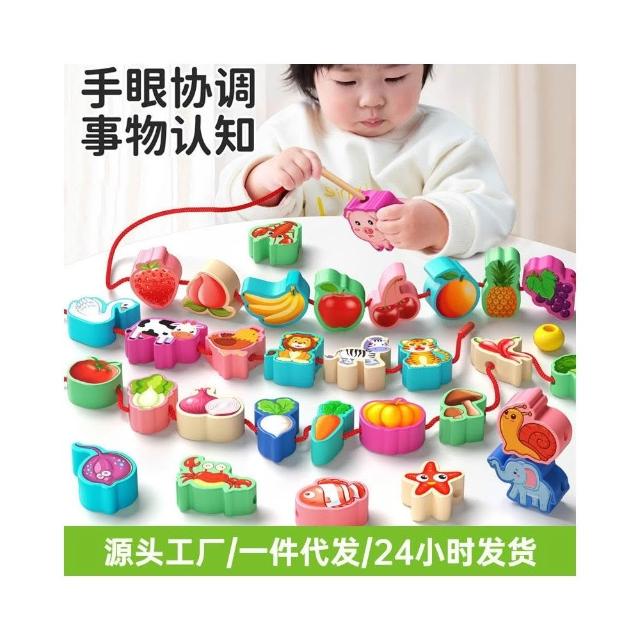 兒童串珠益智動腦動手專注力穿繩子蒙氏早教寶寶1-2歲大顆粒玩具
