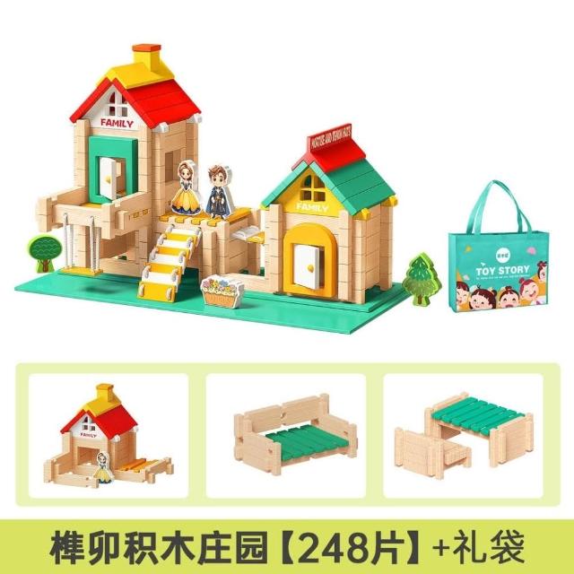 魯班榫卯積木益智玩具小建築師大顆粒木製建築結構拼裝兒童搭房子