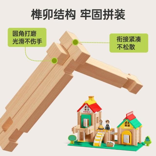 魯班榫卯積木益智玩具小建築師大顆粒木製建築結構拼裝兒童搭房子