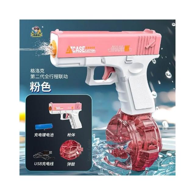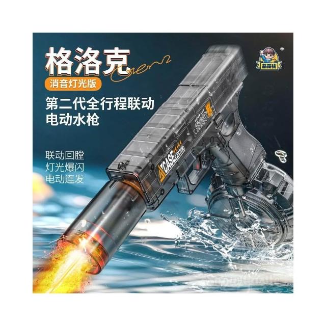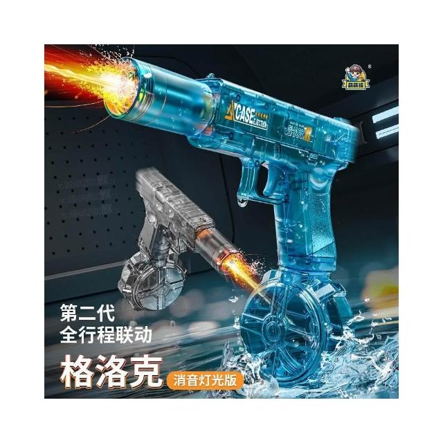 第二代格洛克水槍爆閃燈光全行程聯動高速連發大容量兒童電動水槍
