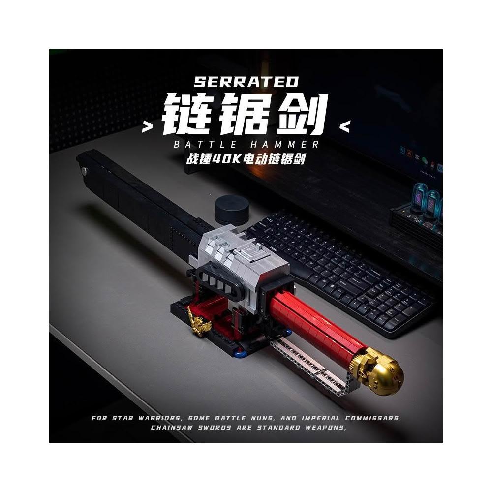小角度JD028鋸齒鏈鋸劍電動武器創意模型擺件拼積木遙控玩具