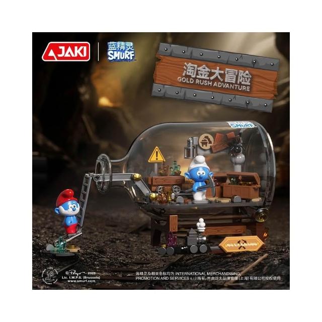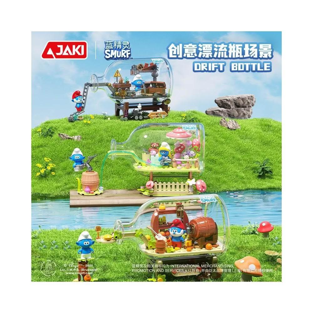 JAKI佳奇HK322-324正版藍精靈漂流瓶積木潮玩拼組裝兒童益智玩具