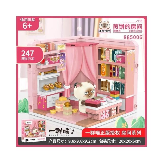 積乎885001-8如果歷史是一群喵積木拼裝潮玩擺件湯圓年糕拉麵玩具