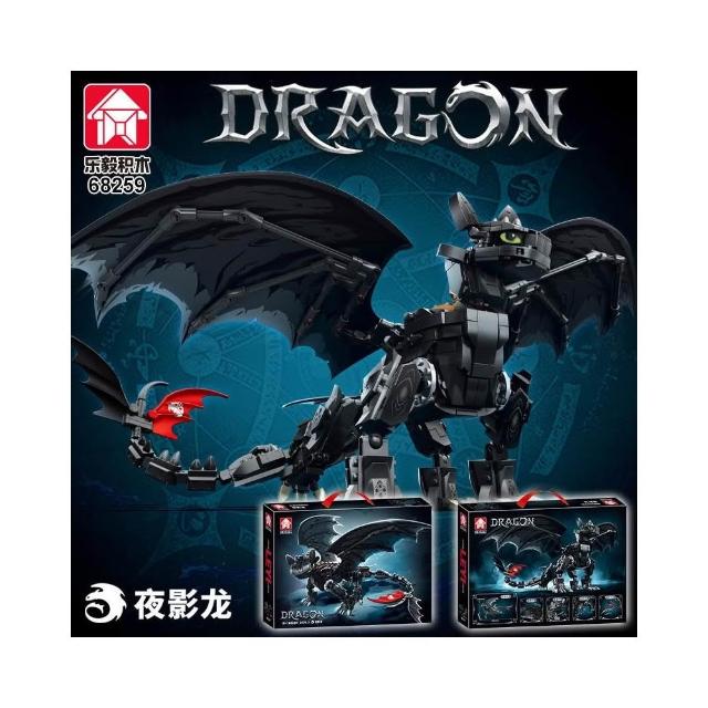 樂毅68259馴夜影龍高手黑煞白煞恐龍拼組裝兒童益智玩具模型