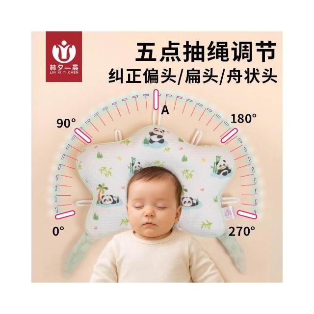 嬰兒小米定型枕新生兒0到6個月抽拉繩五點式糾正睡頭型寶寶定型枕