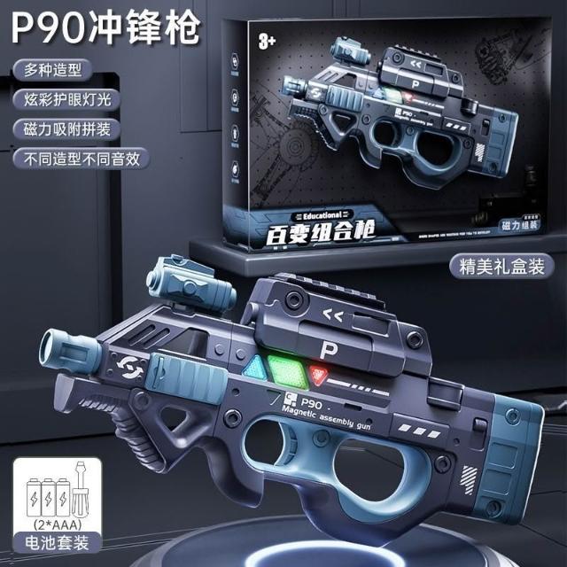 兒童電動聲光玩具槍百變組合拼裝磁力槍3仿真6歲男孩子的生日禮物