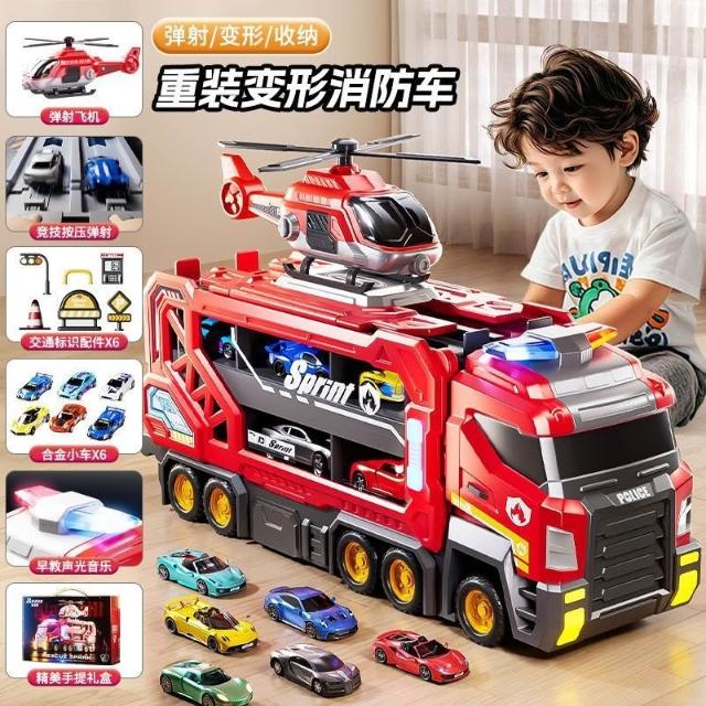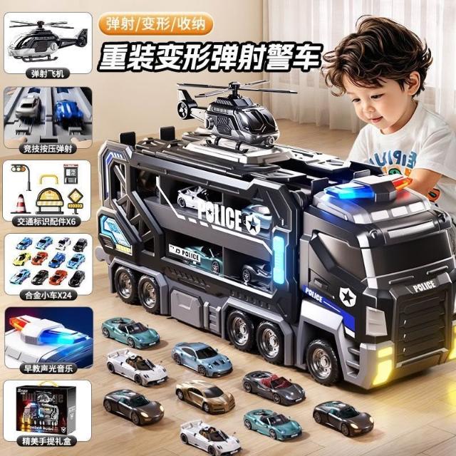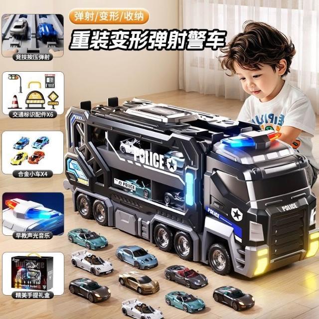兒童警車軌道玩具車4變形滑行彈射5合金收納小汽車男孩3到6歲飛機