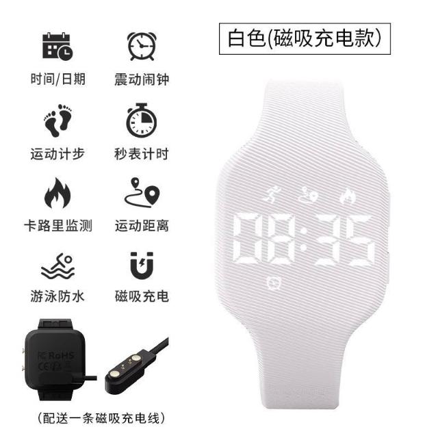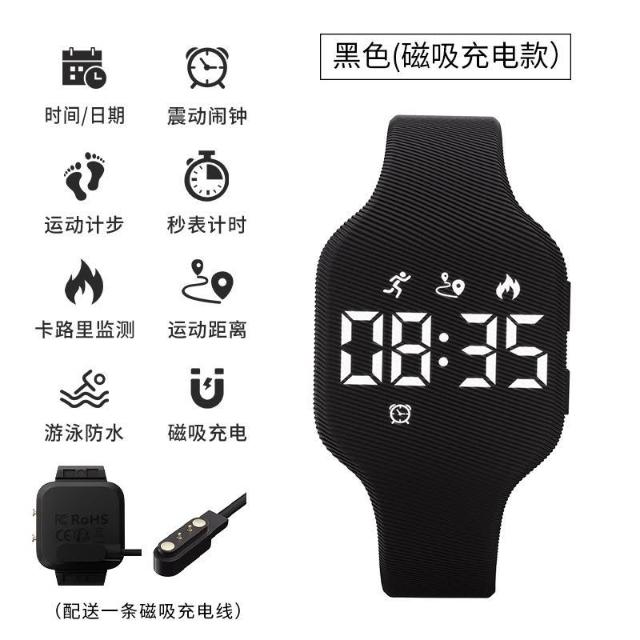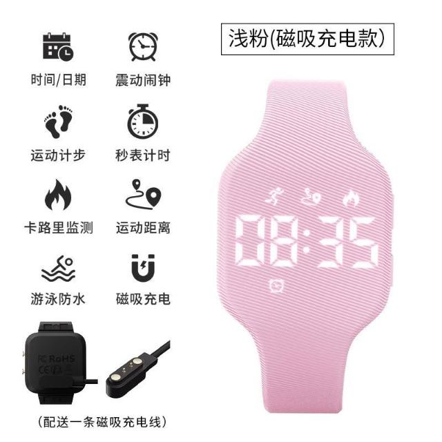 新款初高中學生兒童方形手表夜光看時震動鬧鐘計步計時男女孩腕表