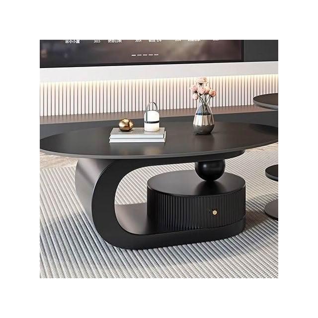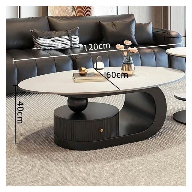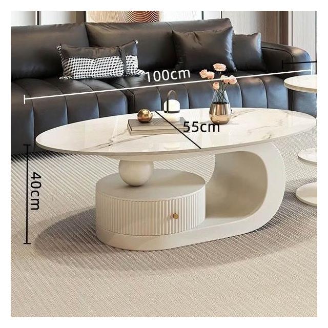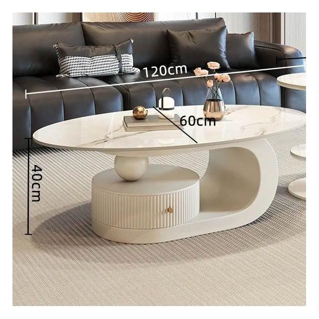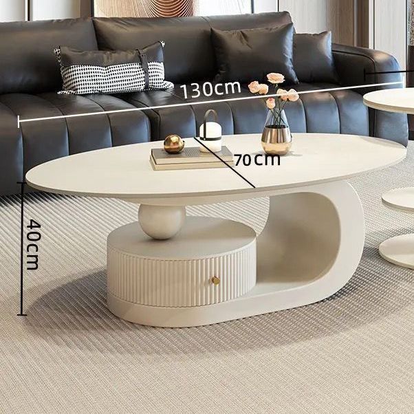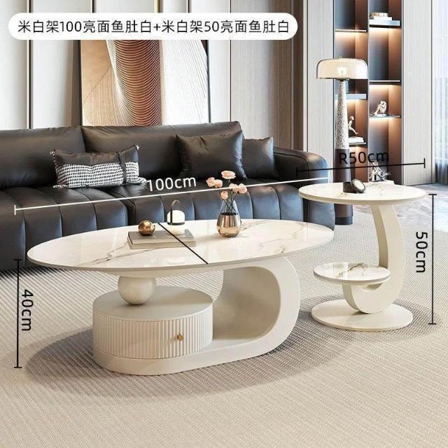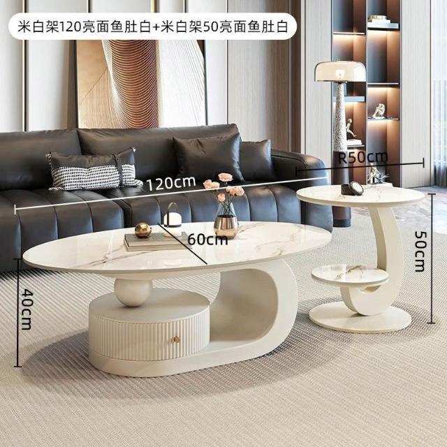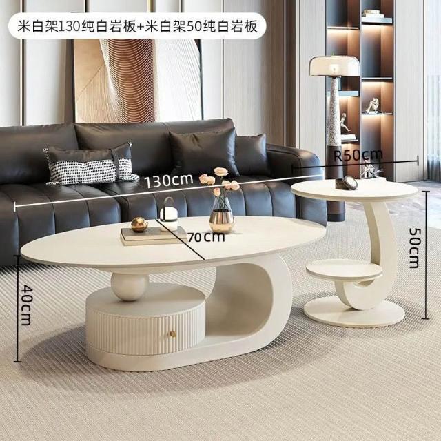 奶油風橢圓形巖板茶幾客廳輕奢現代簡約意式極簡家用小戶型沙發邊