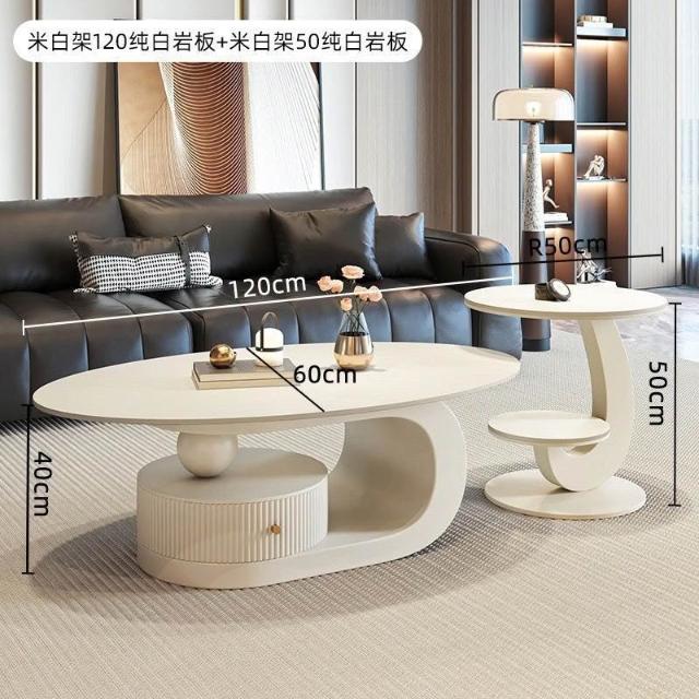 奶油風橢圓形巖板茶幾客廳輕奢現代簡約意式極簡家用小戶型沙發邊