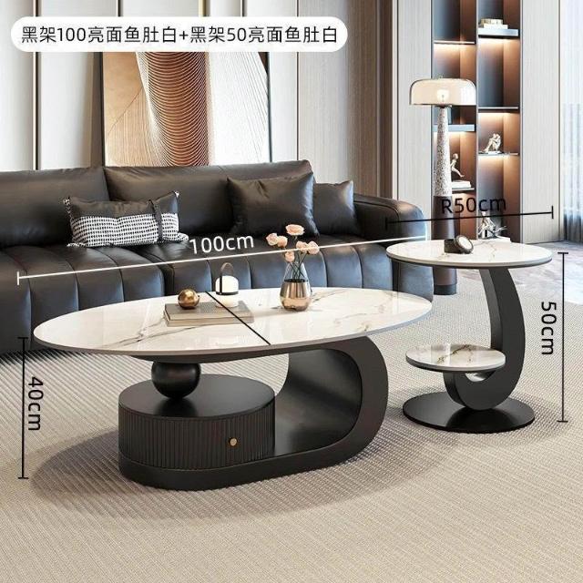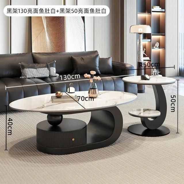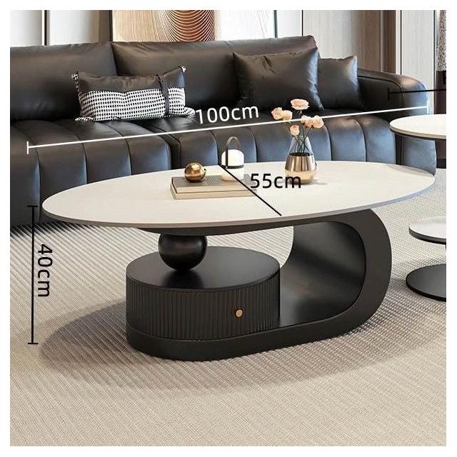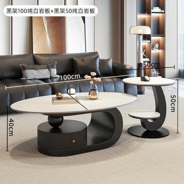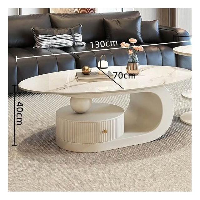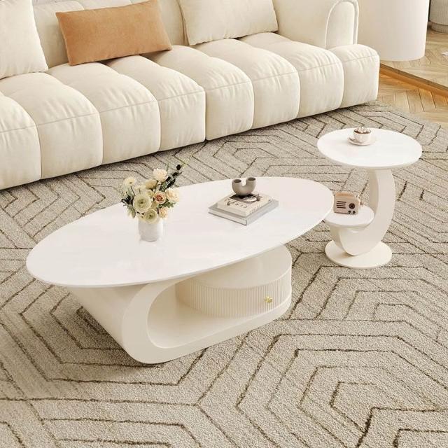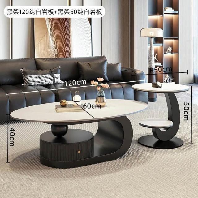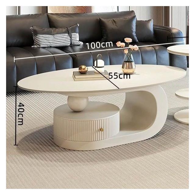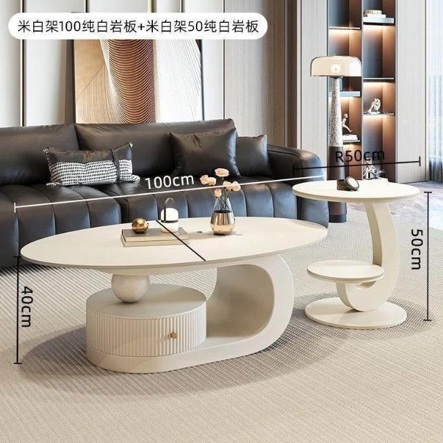 奶油風橢圓形巖板茶幾客廳輕奢現代簡約意式極簡家用小戶型沙發邊