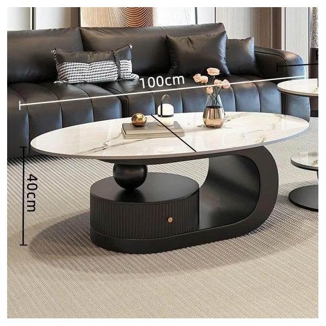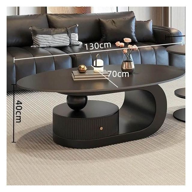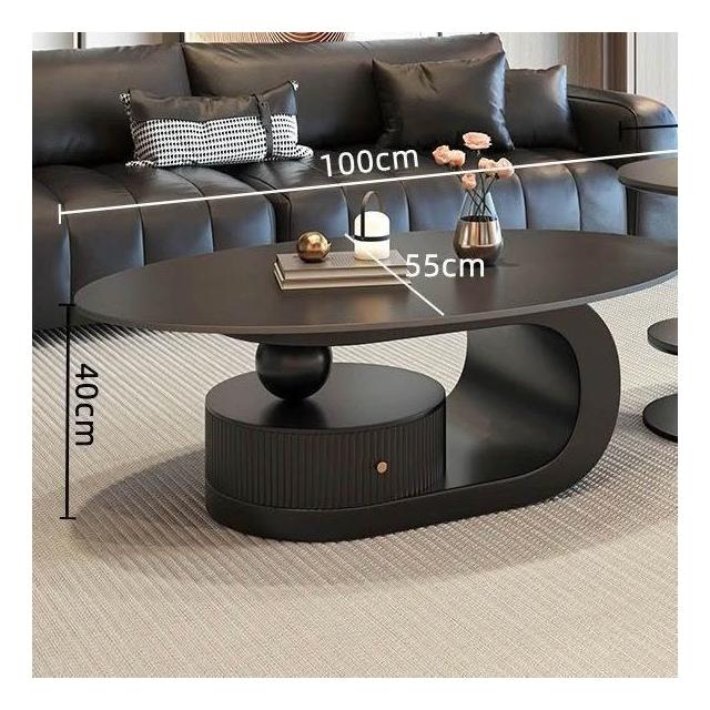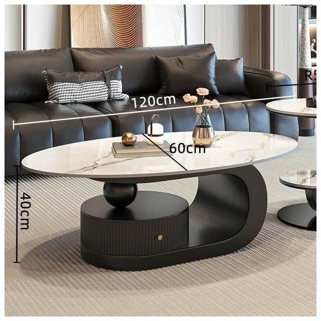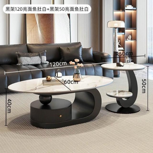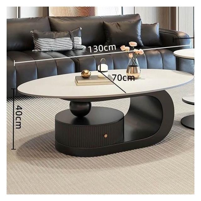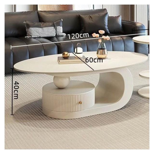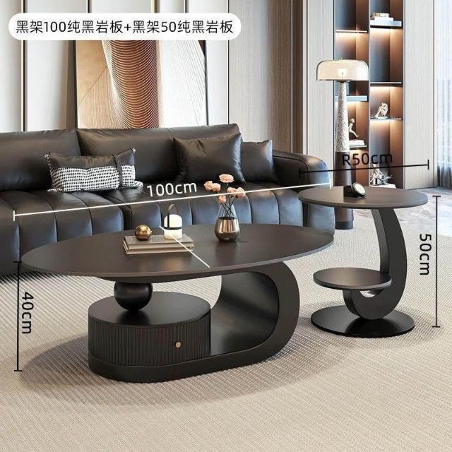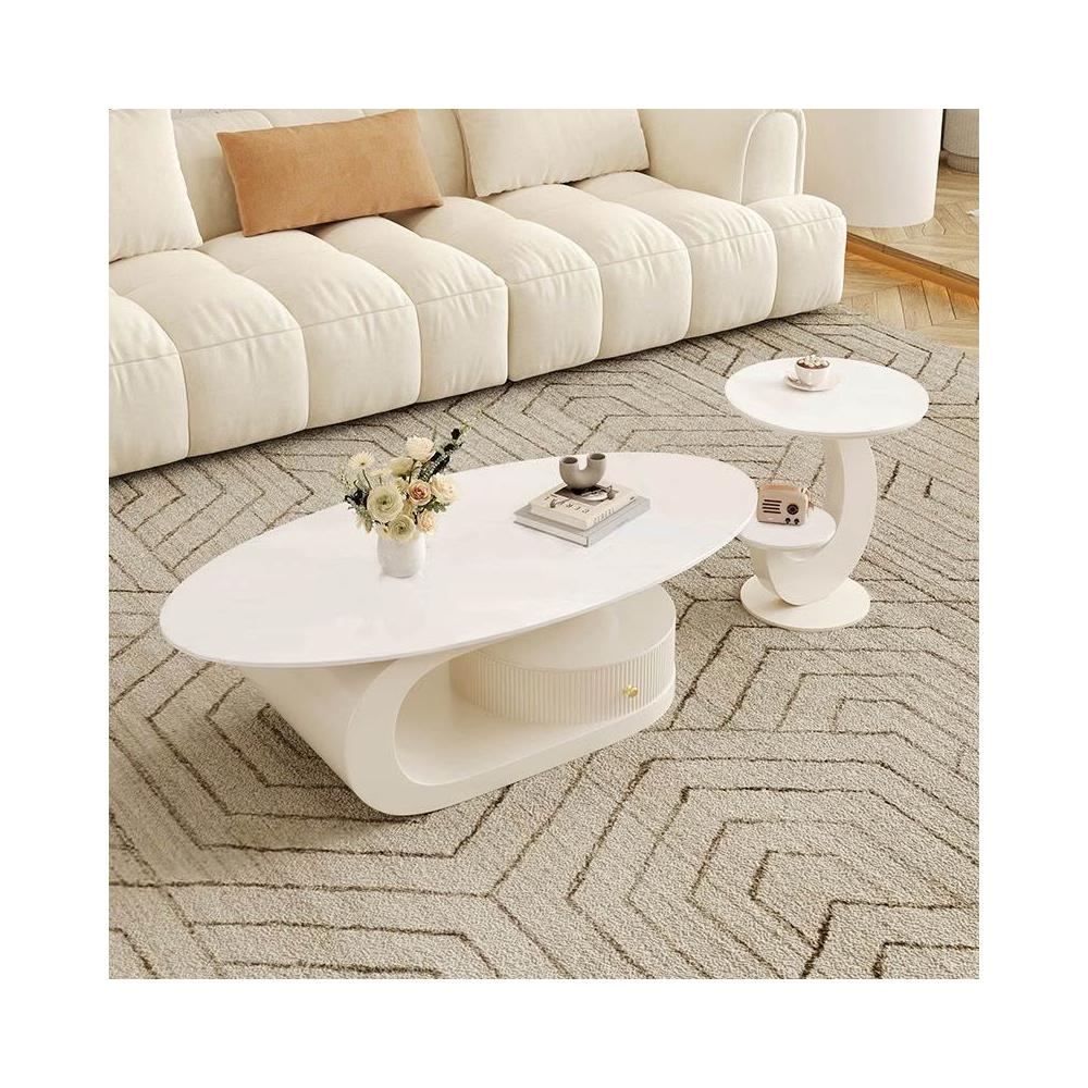 奶油風橢圓形巖板茶幾客廳輕奢現代簡約意式極簡家用小戶型沙發邊