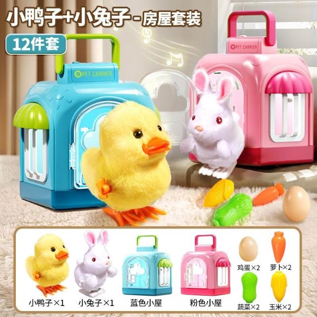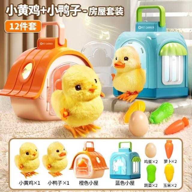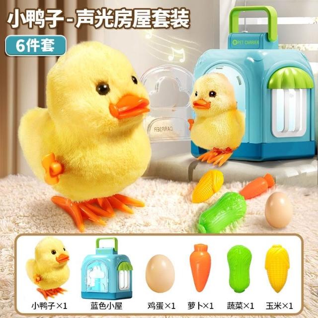 毛絨小鴨子寵物玩偶發條上鏈小雞仿真動物模型兒童1-3歲寶寶2玩具