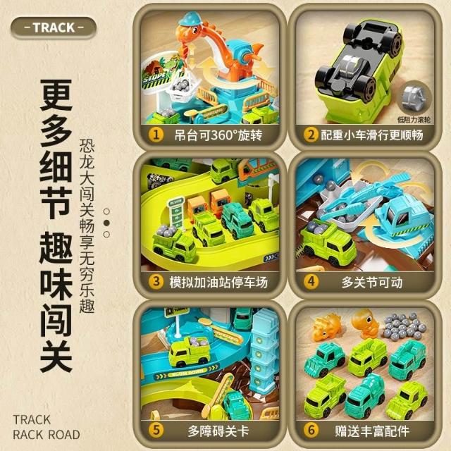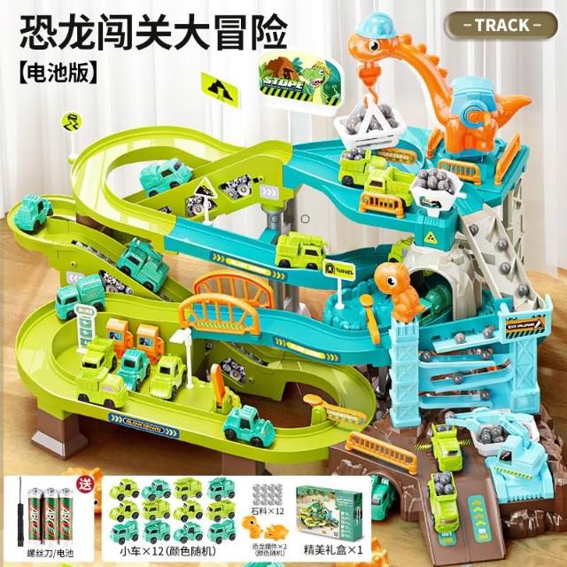 禮物 兒童恐龍闖關大冒險電動軌道慣性車玩具停車場模型3-6歲男孩5益智