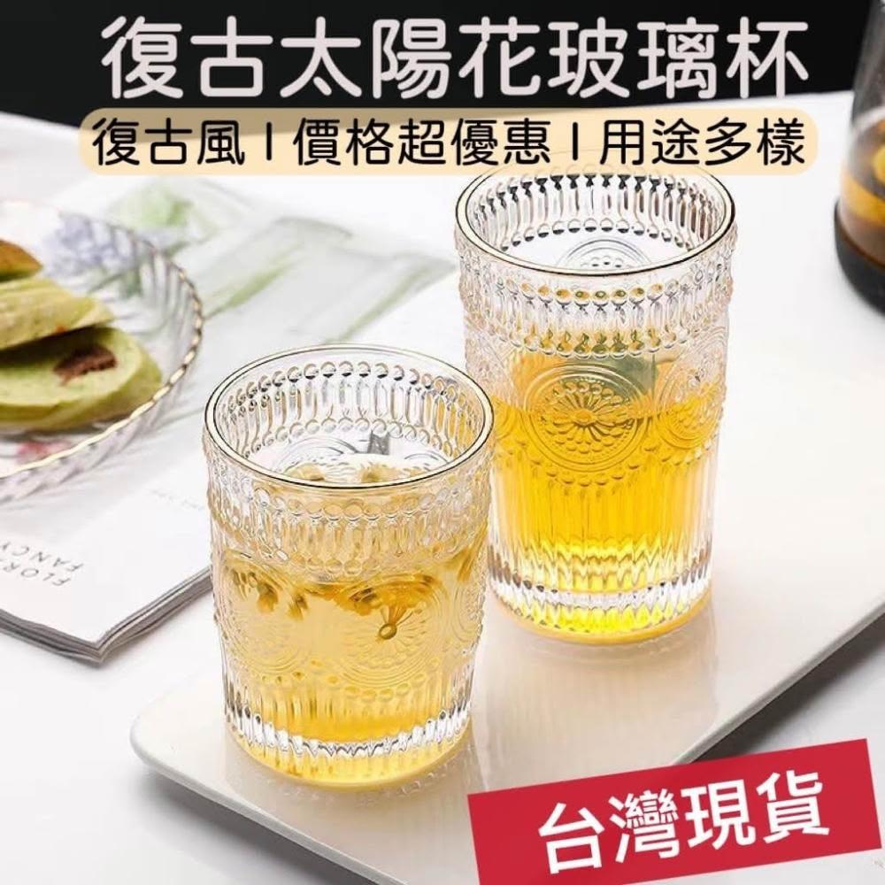 大發餐具 復古太陽花玻璃杯 浮雕玻璃杯 水杯 酒杯 茶杯 玻璃杯 飲料杯