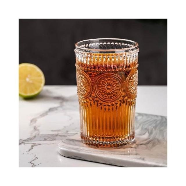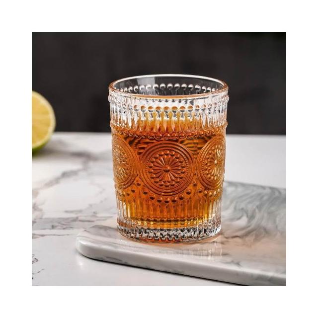 大發餐具 復古太陽花玻璃杯 浮雕玻璃杯 水杯 酒杯 茶杯 玻璃杯 飲料杯