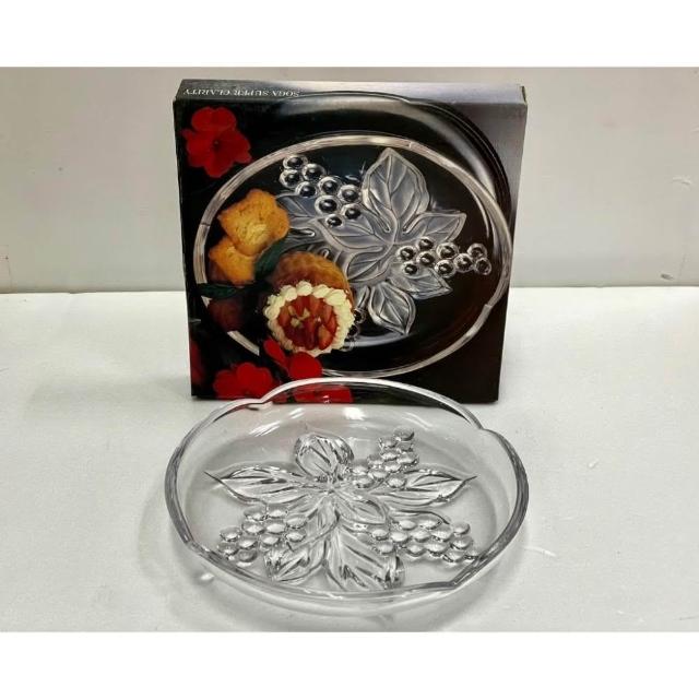 知久道具屋 日本製SOGA 水果盤22CM 立體浮雕 水晶玻璃盤 果盤 淺盤 玻璃盤 A35983W