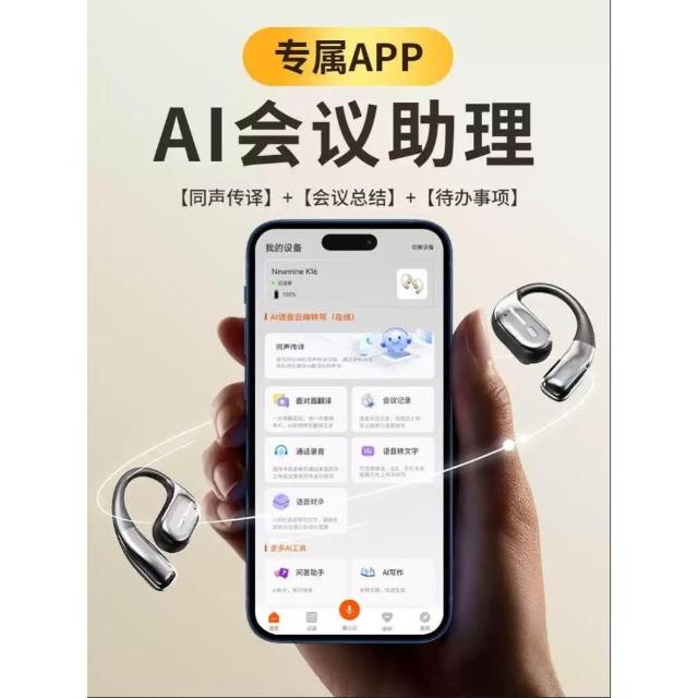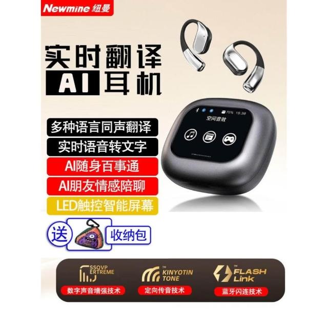 無線藍牙翻譯耳機ai智能多語種同聲傳譯降噪通話會議錄音掛耳
