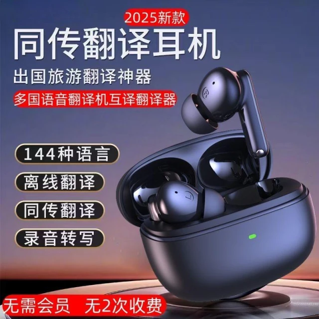 2025新款翻譯耳機無線藍牙語音同傳翻譯器掛耳式多國語言實時翻譯