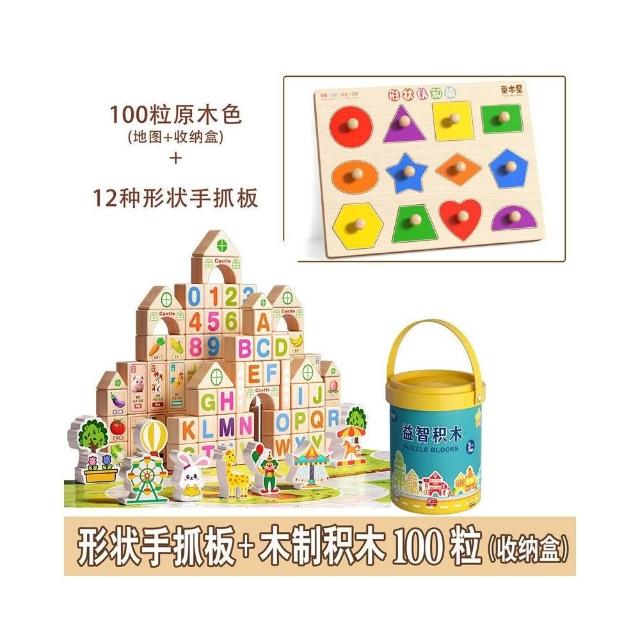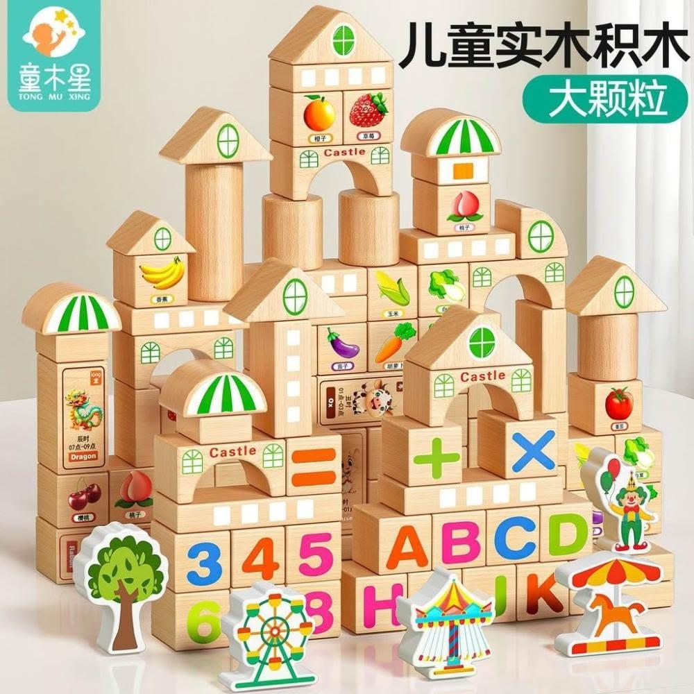 兒童益智動腦開發智力大顆粒實木積木男孩女孩3到6歲拼裝搭建玩具