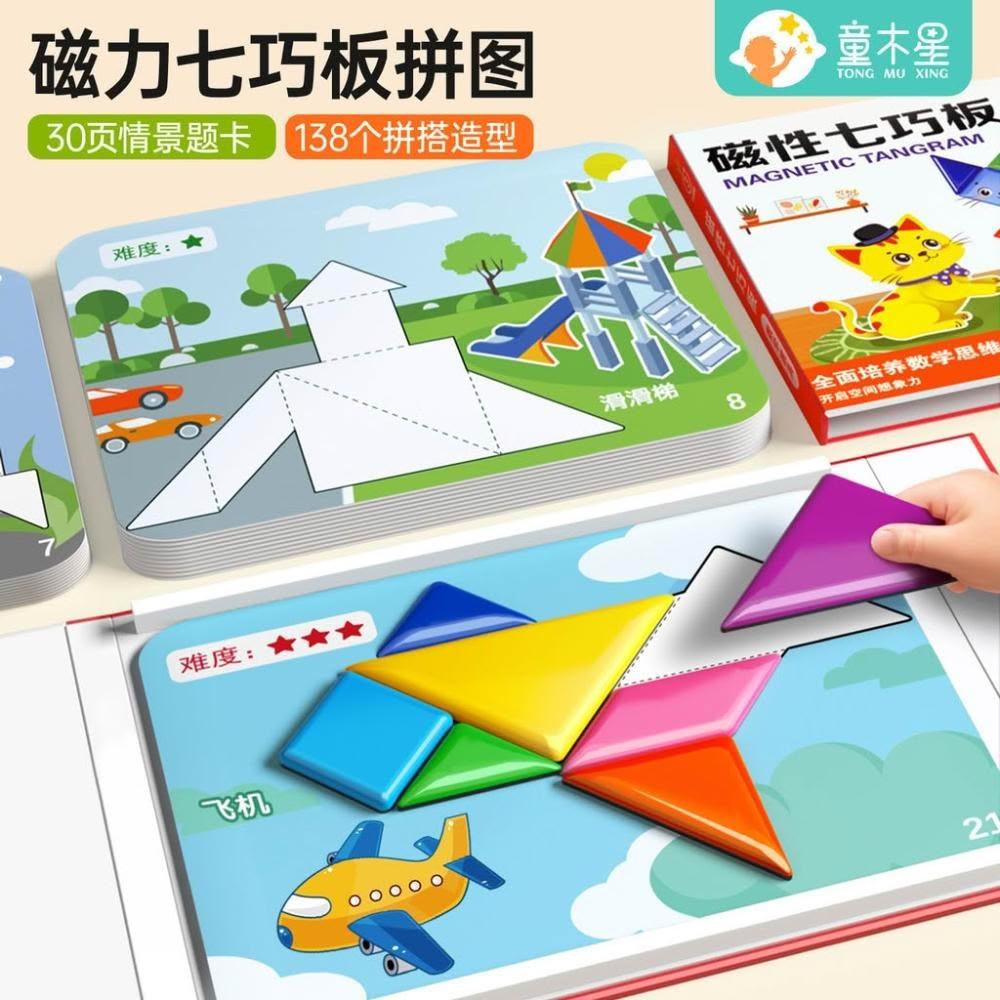 兒童磁力七巧板小學生一年級3-6玩具早教幼兒園禮物智力拼圖創意