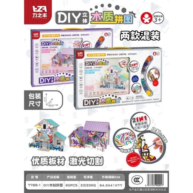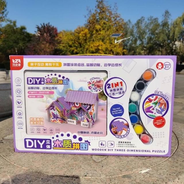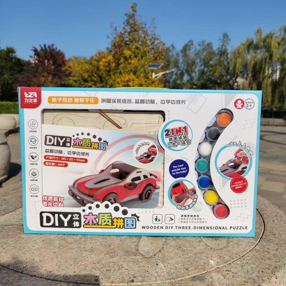 兒童玩具3D立體拼裝木質拼圖彩繪男孩女孩益智手工培訓班禮盒