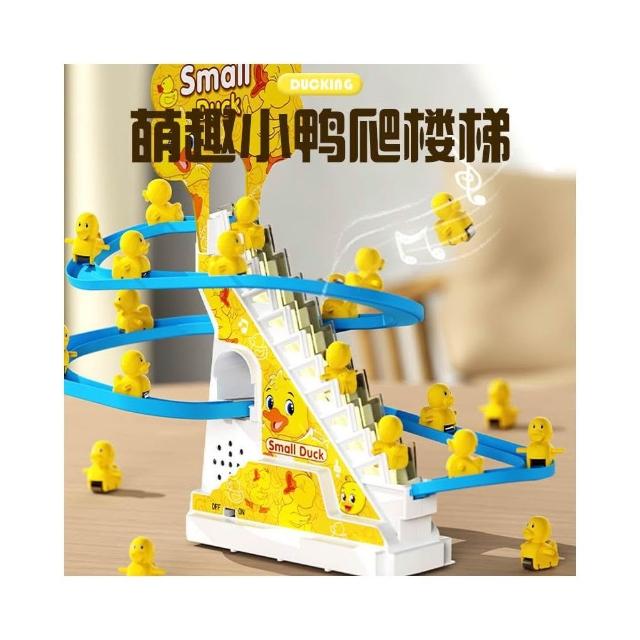 小鴨子爬樓梯小黃鴨上樓梯滑滑梯電動鴨子軌道兒童玩具