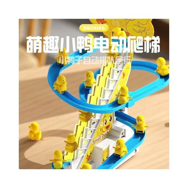 小鴨子爬樓梯小黃鴨上樓梯滑滑梯電動鴨子軌道兒童玩具
