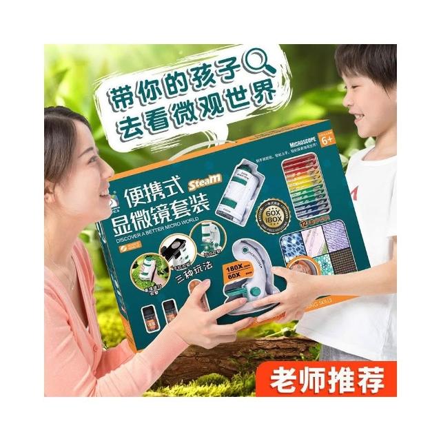 學優馬兒童顯微鏡便攜式科學實驗禮盒套裝小學生生物男孩科教玩具