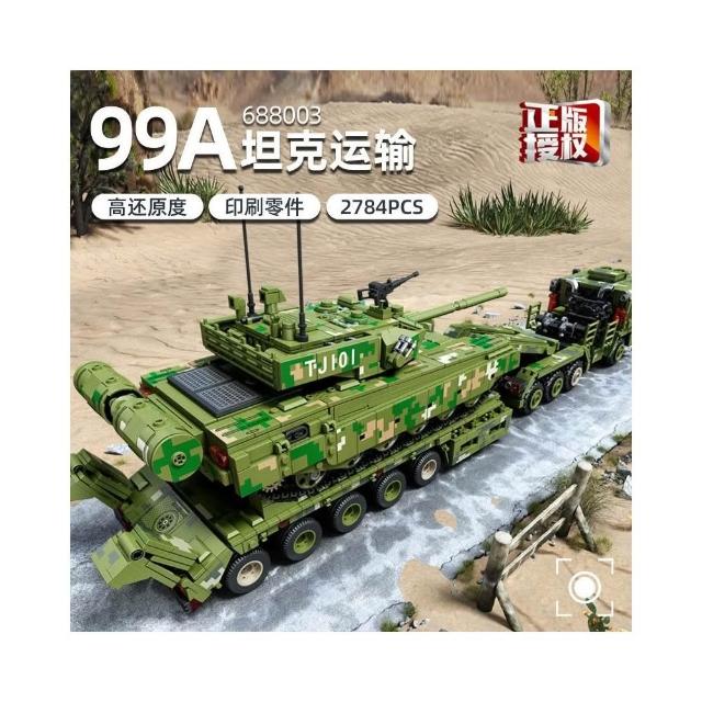 688001-8正版99A坦克運輸車履帶自行火砲拼裝積木兒童玩具