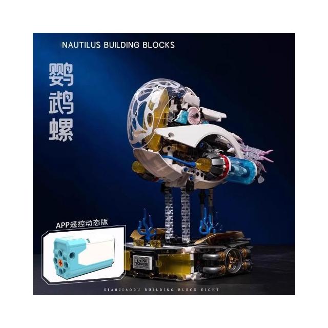 JD072電動機械鸚鵡螺成人moc拼裝朋克潮玩積木擺件玩具