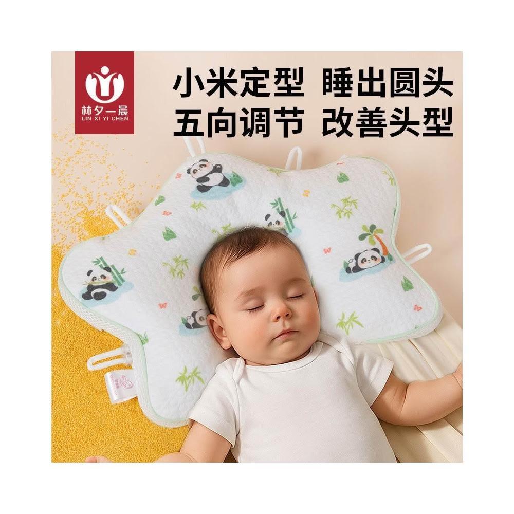 嬰兒小米定型枕新生兒0到6個月抽拉繩五點式糾正睡頭型寶寶定型枕