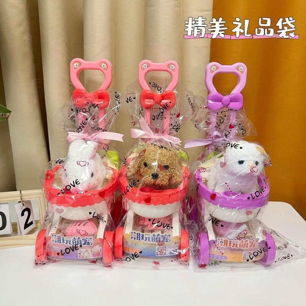 兒童萌寵手推車玩具電動發聲可行走毛絨小貓套裝親子互動寵物玩具
