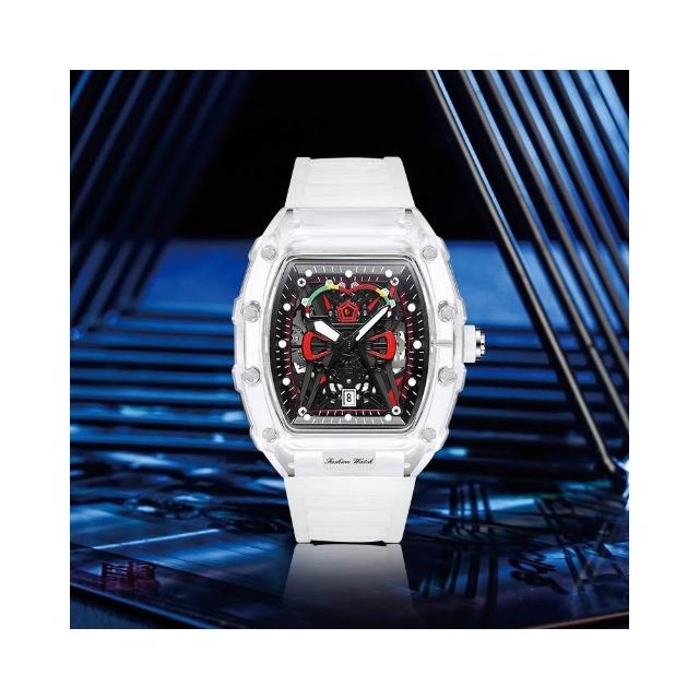 個性酒桶形石英表時尚透明手錶男錶防水腕錶watch